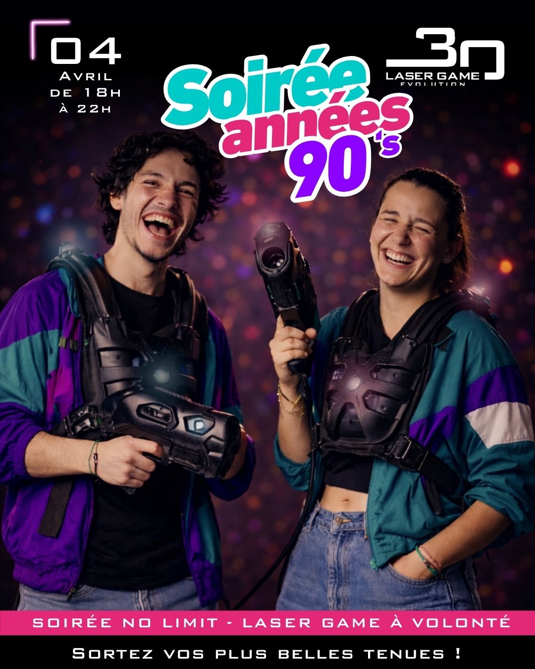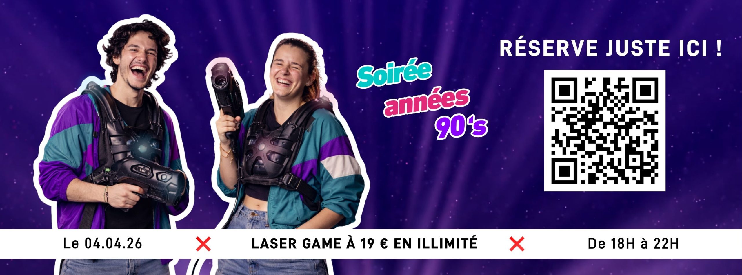 Pendant toute la soirée profitez de parties de laser game illimitées dans une ambiance 100% 90’s !